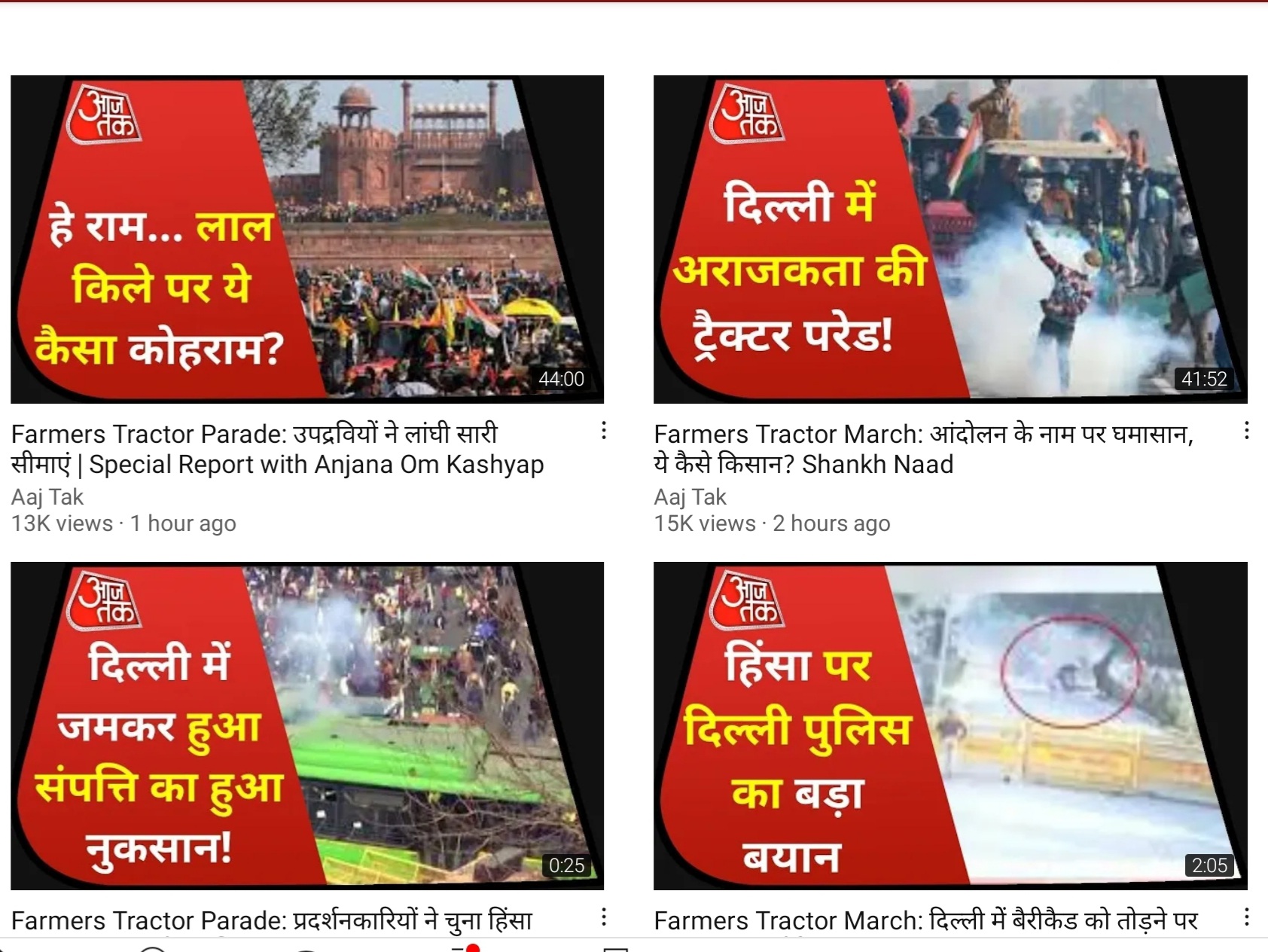 आज से हफ्ता पहले जब दुनिया का सबसे ताक़तवर देश ने अपने लोकतंत्र के मंदिर कैपिटॉल पर एक ख़ास विचारधारा के लोगों द्वारा उपद्रव और उत्पात का दृश्य देखा तो दुनिया भी उसे हतप्रभ देखती रही. मोदी से लेकर दुनिया के बड़े राजनेताओं ने उसकी निंदा भी कि. लेकिन उन उत्पातों के पीछे तब के राष्ट्रपति कि मंशा को वहां के लोगों और विपक्ष ने समझा और महाभियोग तक चलाया गया. मेरे ख्याल से एक मजबूत राष्ट्र ने एक मजबूत उदाहरण पेश किया और सबसे ताक़तवर को कटघरे में खड़ा किया. हमारे यहाँ सिस्टम उल्टा है राजा पर कोई प्रश्न चिन्ह उठाना मतलब खुद को राष्ट्र विरोधी के ठप्पे से चिन्हित करवाना है. हाँ गोदी मीडिया बड़ी जल्दी ये ज़रूर बता देती है कि ये दो नंबर के नागरिक हैँ और कितनी संपत्ति का नुकसान हुआ. और ये भी कि इसकी भरपाई इनसे ही होनी चाहिए.अलग अलग टीवी चैनलों को देखे तो आपको ऐसा लगेगा की जो मीडिया जमिया और जे एन यू पर हल्के फुल्के से थे आज वही एंकर और चैनल्स चीखते चिल्लाते बड़े गुस्से में हैँ. हेडलाइन्स वैसे लिखें गएँ हैँ मानो किसानों से उस बात का बदला ले रहें हैँ जब इन प्रदर्शणों में इनको कई मौकों पर बाइट देने से ये बोलकर मना कर दिया था कि गोदी मीडिया से बात नहीं करनी.
